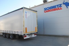 * Logo SCHMITZ CARGOBULL na drzwiach tylnych z lewej strony