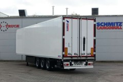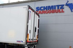 - Logo SCHMITZ CARGOBULL na drzwiach tylnych z lewej strony